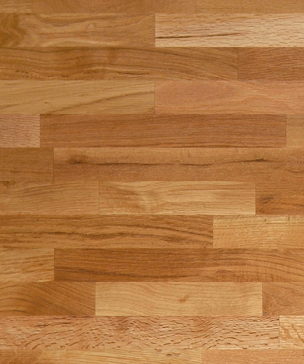 A sample of the solid oak pre oiled worktop, showing detail of the 40mm staves.